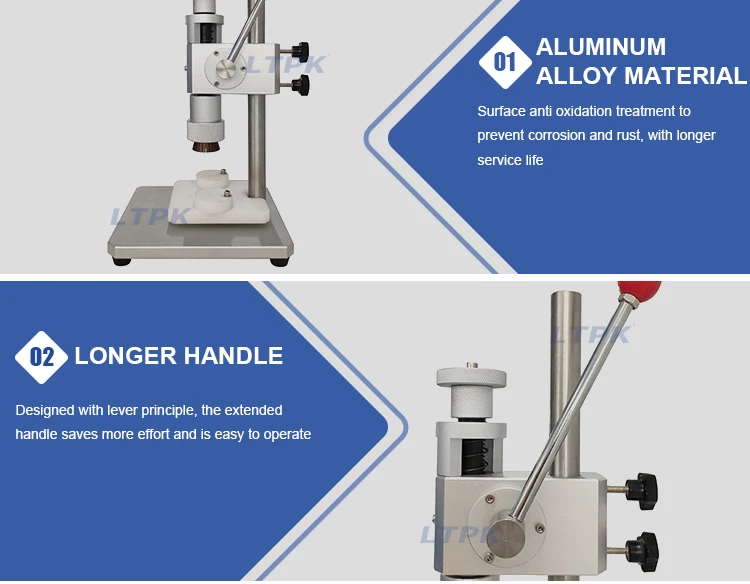LT-MC50 Manual Capping Locking Machine Perfume Glass Bottle Crimping Machine Product Item:LT-MC50 Voltage: 220V/110V Operation method: manual Application: perfume bottle Work height :60-200mm(adjustable) Manual Bottle Crimping Machine Inquiry Send Email
